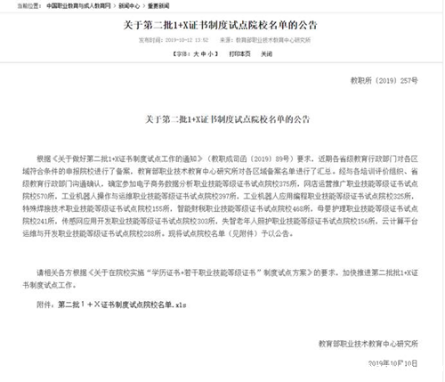 “1+X”证书制度试点是“职教20条”的一大亮点,是推动技术技能人才培养培训模式和评价模式改革的重要举措。这一试点证书制度的实施,将深化复合型技术技能人才培养培训模式改革。国家教育部也将会对院校开展“学历证书+若干职业技能等级证书”制度试点的实施情况作为“双高计划”等考核的评价依据之一。