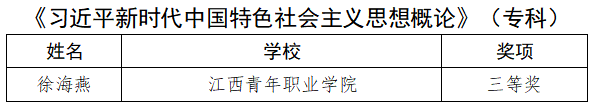 近日,江西省教育厅正式公布2025年全省高校思政课和红色文化课程青年教师教学基本功比赛结果,在这场汇聚全省高校教学精英的激烈角逐中,我校教师凭借扎实的专业素养与创新的教学风采斩获二等奖2项、三等奖1项。其中,郑爱勤老师获“毛泽东思想和中国特色社会主义理论体系概论”课程(专科)二等奖,余焰培老师获《红色文化》课程(专科)二等奖,徐海燕老师获《习近平新时代中国特色社会主义思想概论》课程(专科)三等奖。